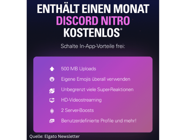 Um den Deal ein wenig zu versüßen, packt Elgato einen Monat Discord Nitro dazu. Ein netter Bonus, denkst du? Moment, da ist ein Haken, und der ist nicht klein. Dieses Angebot gilt nur für Nitro-Neulinge oder Nutzer, deren letztes Abo über ein Jahr alt ist.[2] Treue Discord-Fans und bestehende Nitro-Abonnenten? Schauen leider in die Röhre. Das “Geschenk” ist also eher ein Lockmittel für Neukunden als eine Belohnung für die treue Community.