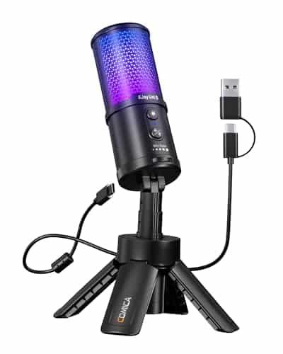 Professioneller Sound ohne kompliziertes Setup: Das ist das Comica EJoy Uni S. Dieses USB-Mikrofon für Creator bietet dir Plug-and-Play-Einfachheit, einen direkten Gain-Regler und Tap-to-Mute. Die stylische RGB-Beleuchtung rundet dein Setup ab. Konzentriere dich auf deinen Content, nicht auf die Technik. Ideal für Stream, Gaming und Podcast.
