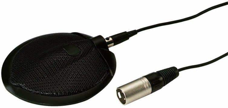 Bei diesem Mikrofon handelt es sich um ein kabelgebundenes Grenzflächenmikrofon mit Elektret-Kondensator-Wandlerprinzip und einer präzisen Halb-Niere Richtcharakteristik. Der Audio-Frequenzbereich erstreckt sich von 50 bis 16.000 Hz, bei einer Nennimpedanz von 250 Ω und einer Empfindlichkeit von 10 mV/Pa. Der maximale Schalldruckpegel liegt bei beachtlichen 130 dB, der Signal-Rausch-Abstand bei 60 dB. Für den Betrieb ist eine DC 9-48 V Phantomspeisung erforderlich. Das robuste Metallgehäuse hat die Abmessungen Ø 75 mm x 20 mm und wiegt 180 g. Der Anschluss erfolgt über einen Mini-XLR-Stecker; ein 6 m langes Anschlusskabel auf einen symmetrischen 3-Pol-XLR-Stecker ist im Lieferumfang enthalten.