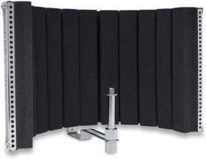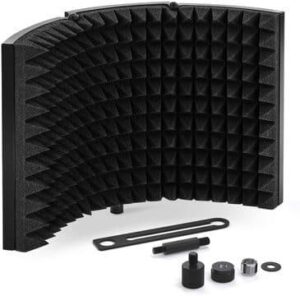 Nicht jede Umgebung ist ideal, um etwas aufzunehmen. Abhängig von Raumgröße, Bodenbeschaffenheit und weiteren Aspekten entsteht ein Hall. Landet dieser im Mikrofon, verzerrt dies die Tonspur. Weiterhin beeinflusst der Raum den Klang der Stimme. Bei hohem Raumanteil klingt die Stimme hohl und unschön. Viel korrigieren lässt sich mit Effekten nicht. Um das Optimum aus deinem Mikrofon zu holen, kann in diesem Fall ein Micscreen Abhilfe schaffen. Es absorbiert die Schallwellen und mindert den Raumanteil, wodurch du die Qualität deiner Aufnahme verbessern kannst.